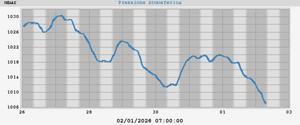 This week's max: 1023,7 mbar at 00:02 on lunedì